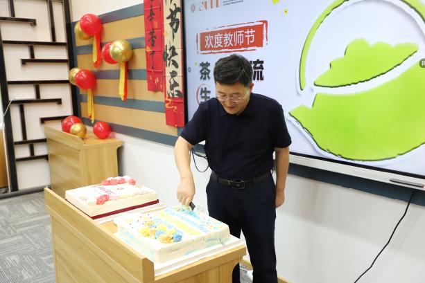 在赵院长的致辞结束后,活动进入了温馨的茶歇环节。赵院长亲自拿起蛋糕刀,为老师们切下象征着甜蜜与幸福的蛋糕,将节日的祝福融入其中。老师们一边品尝着美味的茶点,一边自由地交流着教学心得与工作经验。大家在轻松愉快的氛围中分享着彼此的教育理念与方法,探讨着如何更好地提升教育教学质量,为学生创造更加优质的教育环境。这一环节不仅让老师们在忙碌的工作之余得到了片刻的放松,更增进了教师之间的沟通与协作,凝聚了团队的力量,为今后的工作奠定了良好的基础。