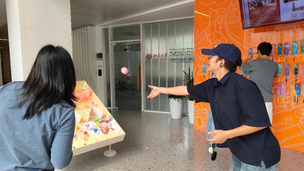在生活部工作人员的主持下,开展了中秋游戏与抽奖活动,包括斜面弹弹珠和猜灯谜游戏。