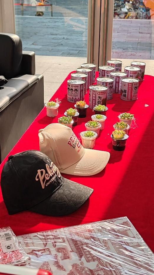 同学们凭游戏累计的抽奖次数在现场依次进行抽奖,结果即时公布、当场领取。奖品包括北大官方棒球帽、行李牌、文件夹以及多肉盆栽等好礼,现场惊喜不断,氛围轻松热烈。
