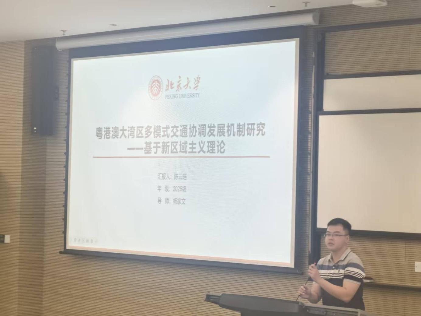 陈云皓同学汇报的题目是“粤港澳大湾区多模式交通协调发展机制研究--基于新区域主义理论”。该研究立足《粤港澳大湾区发展规划纲要》要求,基于新区域主义理论,聚焦大湾区多模式交通协调发展机制,核心解答理念准则、主体纳入、权责分配及合作机制四大问题。新区域主义以多主体网络化合作为核心,强调开放、信任、协作、赋权等特征,区别于传统区域主义的科层制主导。研究构建 “治理理念 - 协作主体 - 赋权治理 - 治理网络” 分析框架,通过城际铁路规划演进、深汕捷运弹性边界治理、广佛地铁互信合作、凯达尔枢纽公私协作、港珠澳大桥三级协调制度等案例验证。研究发现,大湾区交通协调已呈现新区域主义特征:以开放动态的治理理念适配区域发展,纳入政府、市场、社会等多元主体,通过事权财权下放等赋权举措激发活力,建立多层级网络化协作机制。其创新点在于系统衔接新区域主义与交通领域实践,提炼理论性协调框架。该研究既丰富了新区域主义理论的应用场景,也为大湾区及全国其他城市群的多模式交通协调发展提供了可借鉴的实践路径。