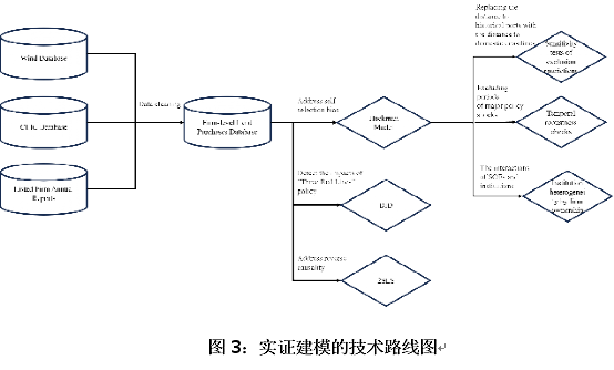 图 3 展示了本文的实证研究框架。本文通过以下途径进行了稳健性检验:i) 排他性约束的敏感性检验;ii) 时间层面的稳健性检验;iii) 基于企业所有权性质的制度异质性分析。此外,我们还采用了双重差分法(DID)和两阶段最小二乘法(2SLS)。需要注意的是,为了缓解潜在的内生性问题,我们采用了基于两阶段最小二乘法(2SLS)的工具变量(IV)方法。具体而言,我们将开发商总部与购地所在城市(现任)市长或市委书记出生地之间的地理距离作为工具变量。该估计结果与 Heckman 模型得出的结论保持一致。